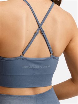 Signature seamless blå sports bh fra Drop of mindfulness er meget blød og behagelig med justerbare stropper, der krydser ryggen. Sports-bh'en har en rib under brystet for bedre støtte, så du kan føle dig godt tilpas til alle former for træning, gymnastik, yoga og Pilates . Bh toppen har puder der let kan tages ud. Normal i størrelsen, men anbefalingen er, at du går en størrelse ned, hvis du ligger mellem to størrelser. Toppen er også perfekt til hot yoga eller som bh under hverdagstøjet.