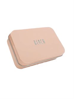 Lille sart rosa metalkasse med brunt hårtilbehør