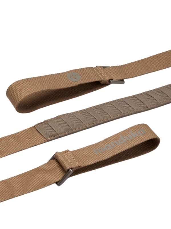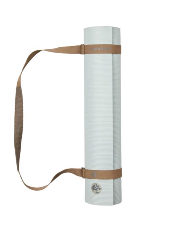 Brun bærestrop til yogamåtte med polstret skulderrem. Den brune farve er som løves manke.