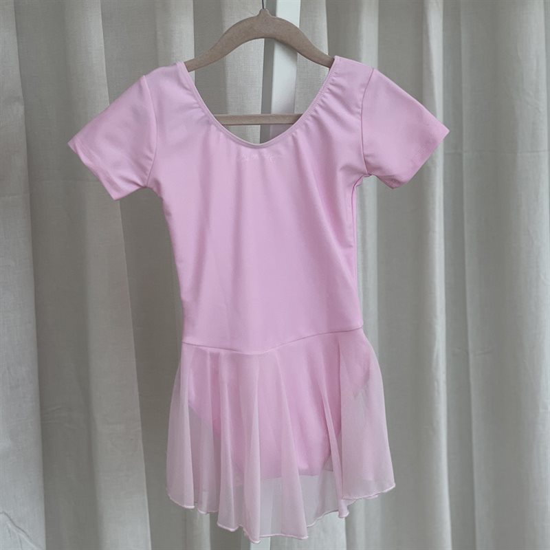 Lyserød gymnastikdragt med skørt og korte ærmer