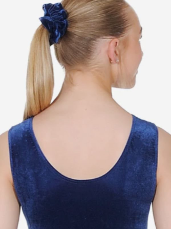 Mørkeblå velour hår elasik til gymnastik. Match med velour dragt og velour short i mørkeblå.