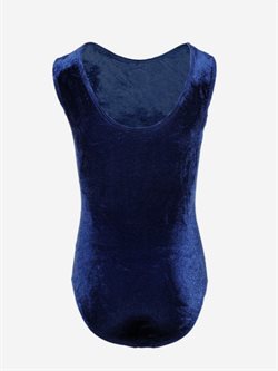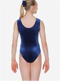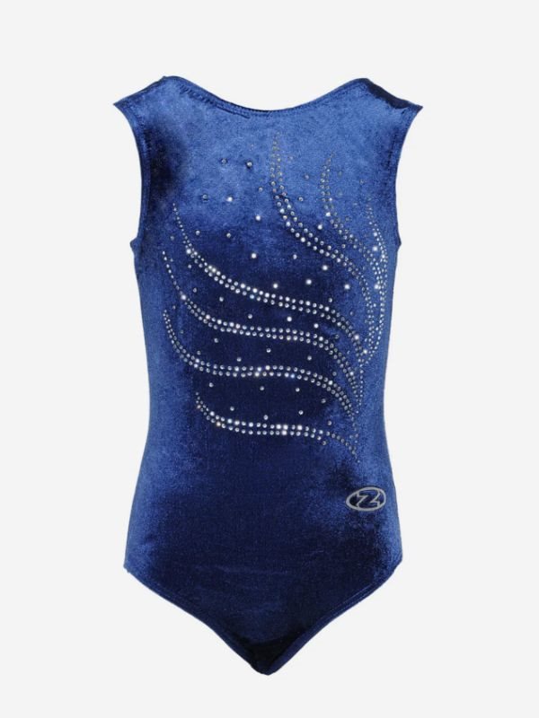 The zone gymnastikdragt til piger uden ærmer i mørkeblå velour med flotte rhinsten på forstykket