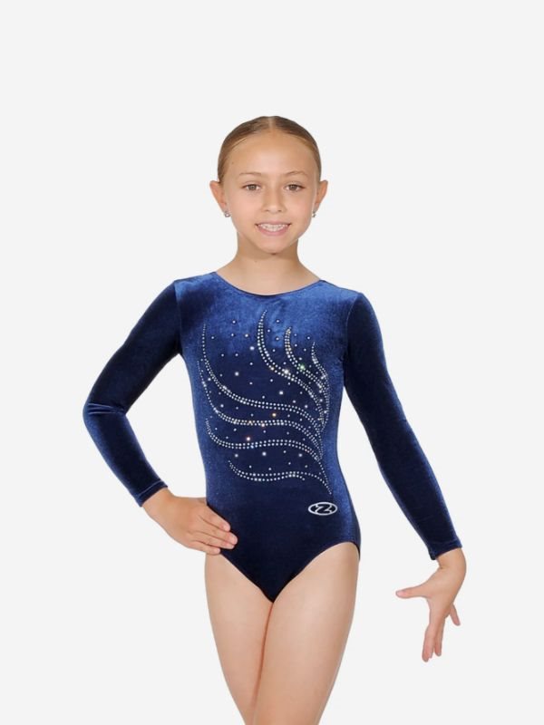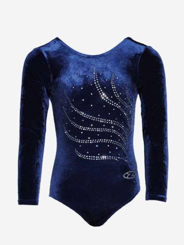 The zone navy gymnastikdragt til piger. Mørkeblå blød velour med flotte sølv sten foran