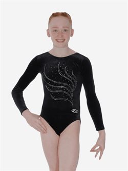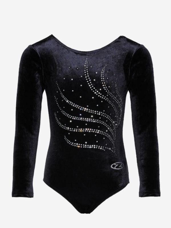 The zone sort gymnastikdragt til piger. Gymnastikdragten er i blød velour med flotte sølv sten foran
